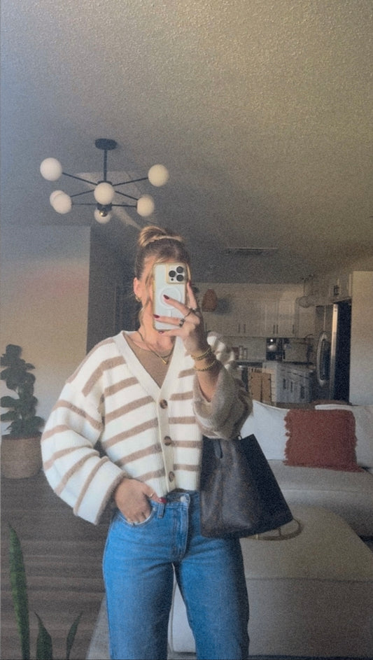 AUBREE STRIPED BUTTON FRONT CARDIGAN